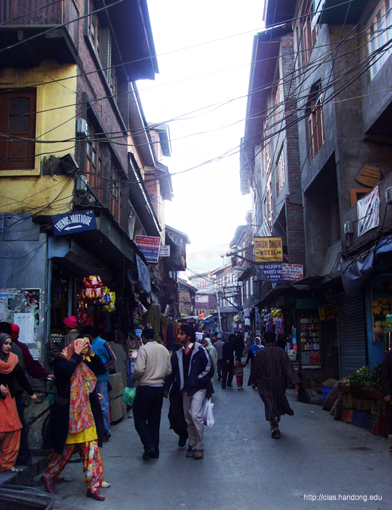 스리나가르 어느 시장의 좁다란 골목 안 풍경.