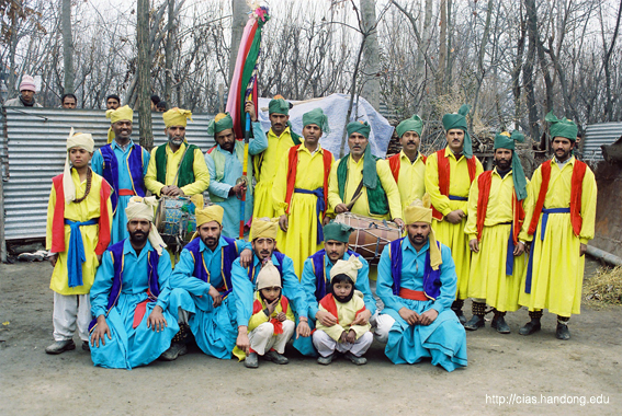 다말리 파키르 종족의 댄스 공연이 끝난 후 단체 사진 한컷.