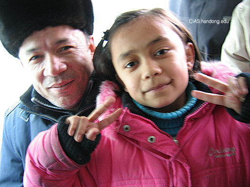 우루무치의 농업대학 근처의 버스에서 만난 부녀지간이었는데